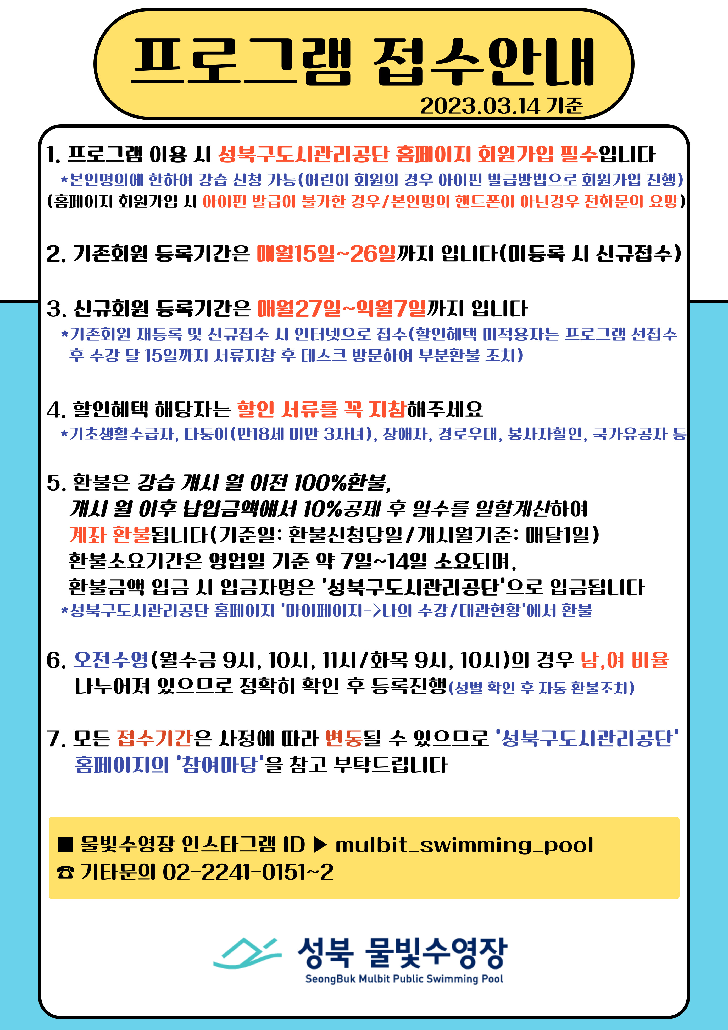 [공지] 물빛수영장 프로그램 접수안내(2023.03.14 기준)