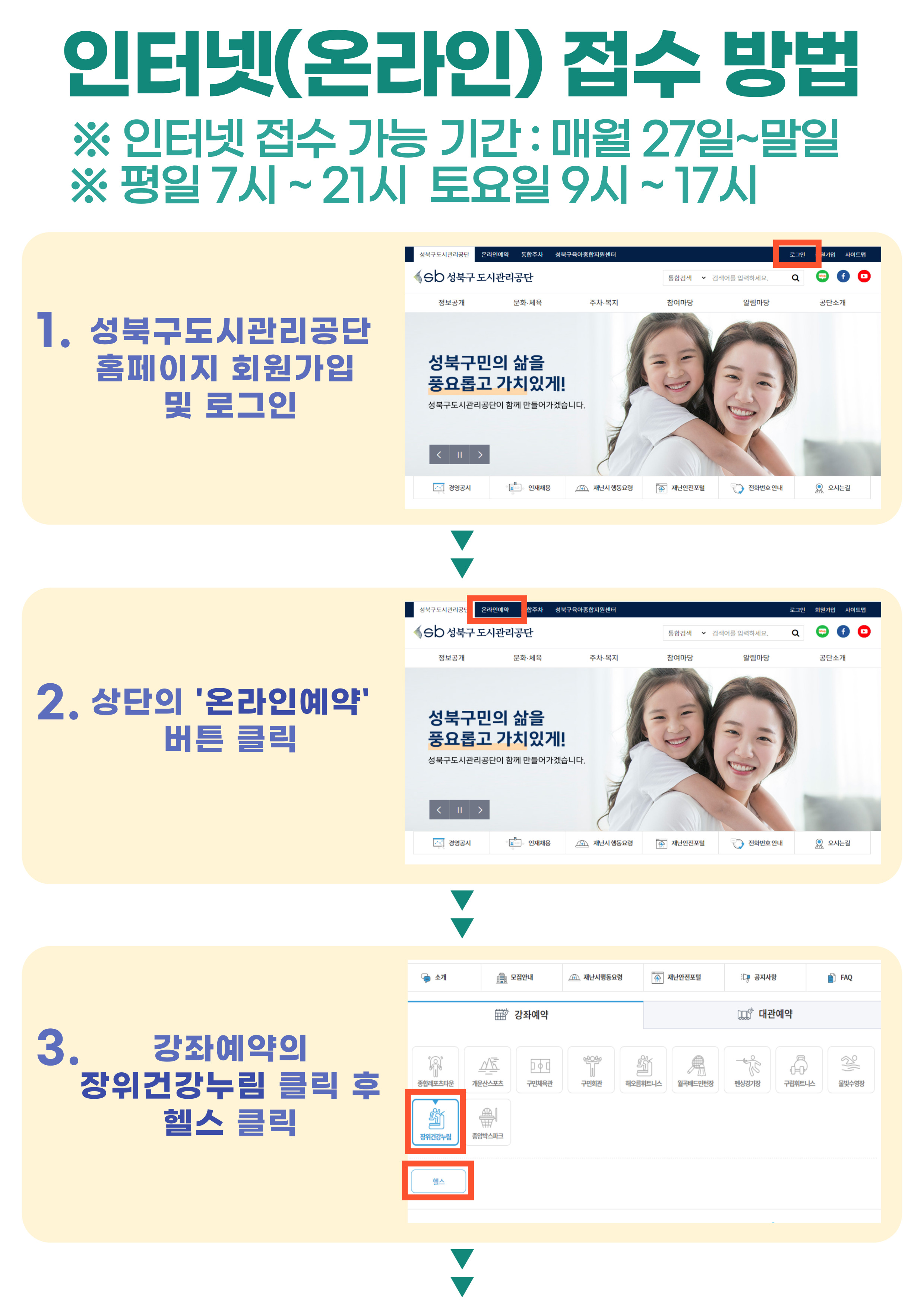 장위건강누림센터 인터넷(온라인) 신규접수 방법 안내