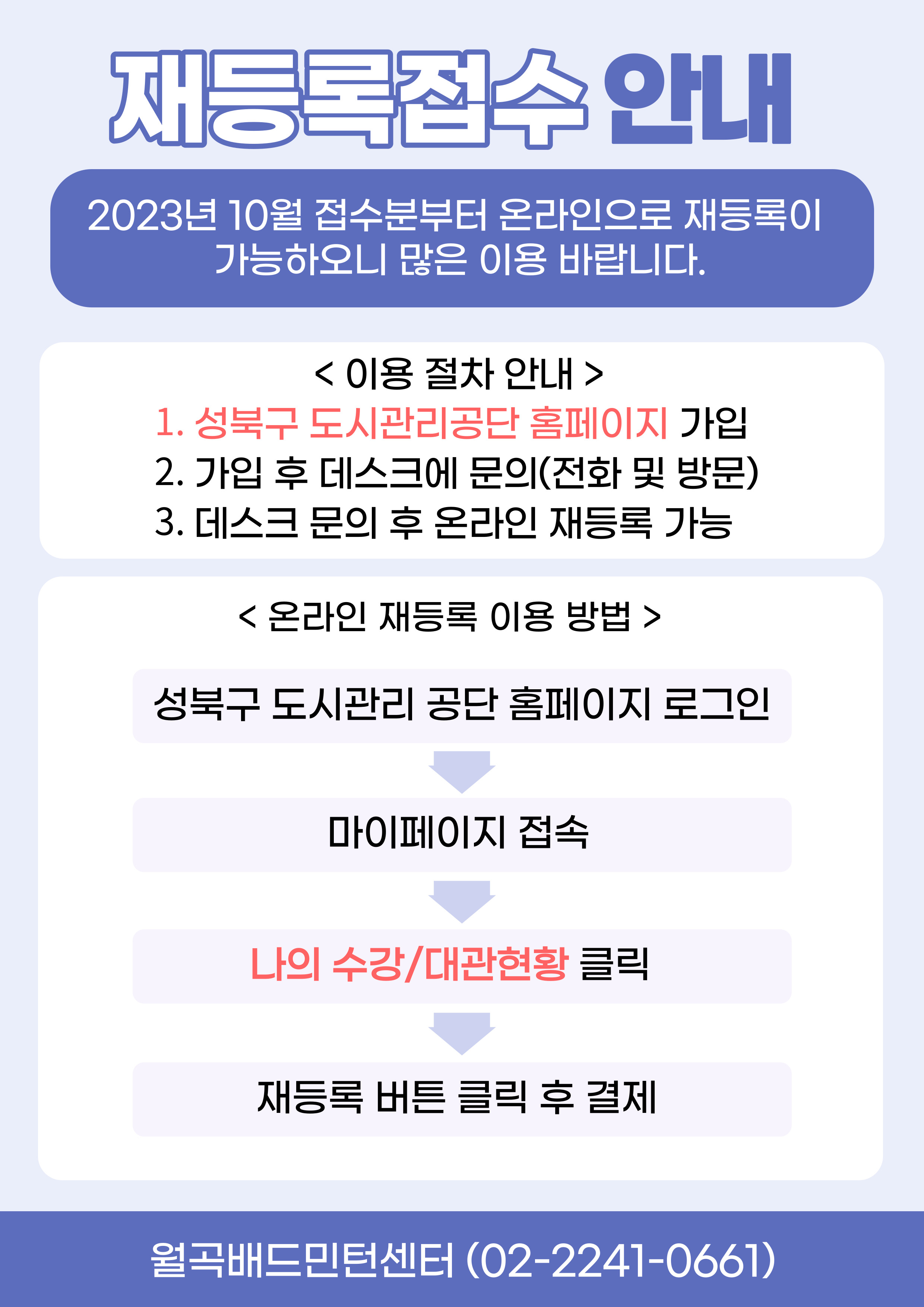 월곡배드민턴센터 온라인 재등록 접수 안내