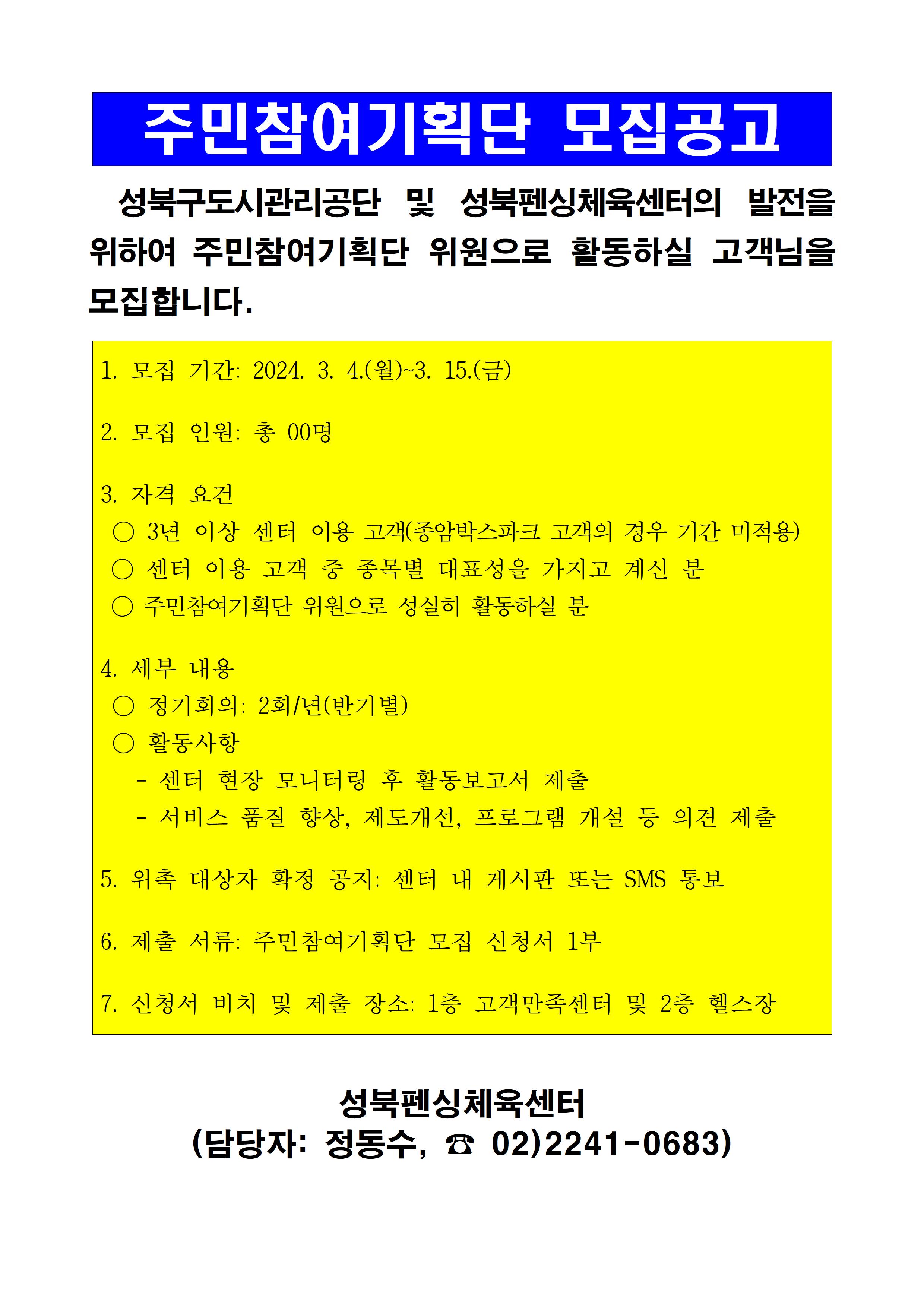 6. 제출서류: 주민참여기획단 모집 신청서 1부