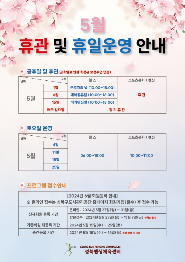 * 기존회원 재등록 기간 : 2024년 5월 15일(수) ~ 25일(토)