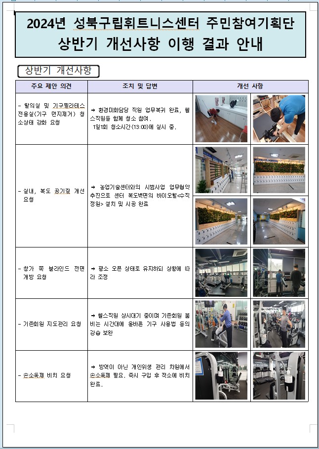 2024년 성북구립휘트니스센터 상반기 주민참여기획단 개선사항 이행 결과 안내