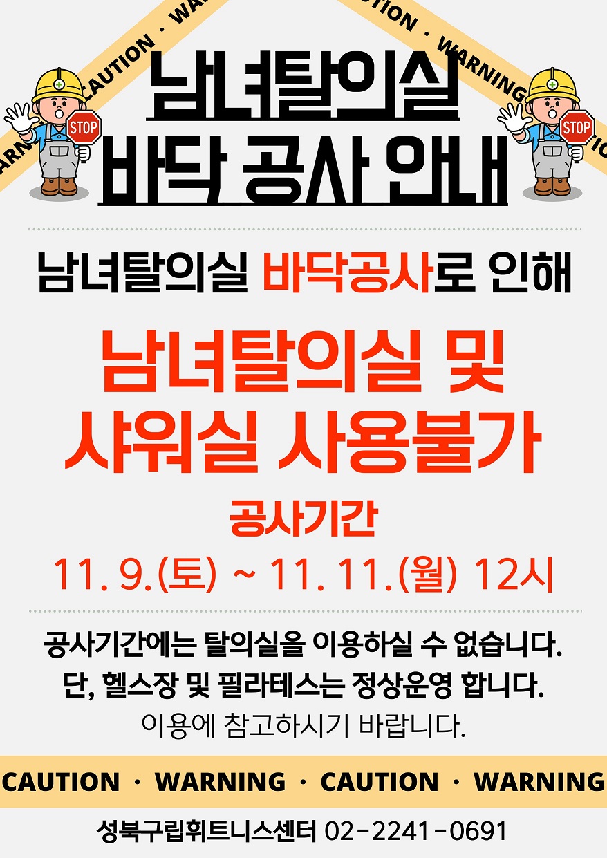 성북구립휘트니스센터 남녀탈의실 바닥 공사 안내