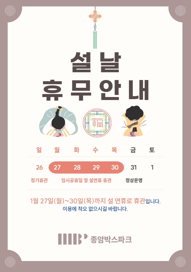 28일~30일 : 설 연휴 휴관